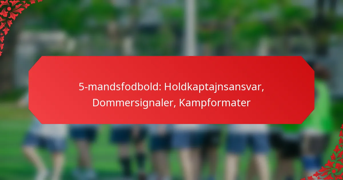 I 5-mands fodbold spiller holdkaptejnen en afgørende rolle i at lede holdet, træffe hurtige beslutninger og fremme kommunikation og holdånd. Spillere skal også være fortrolige med dommersignaler for effektivt at navigere i spillet og reagere på kald som frispark og udskiftninger. Derudover er det vigtigt at forstå de forskellige kampformater for at forberede holdene til både afslappet og konkurrencepræget spil.